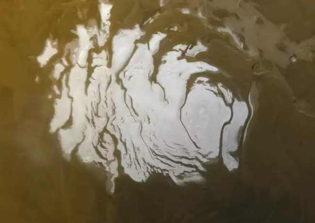 | الغطاء الجليدي للقطب الجنوبي من كوكب المريخ - NASA/JPL/MSSS |